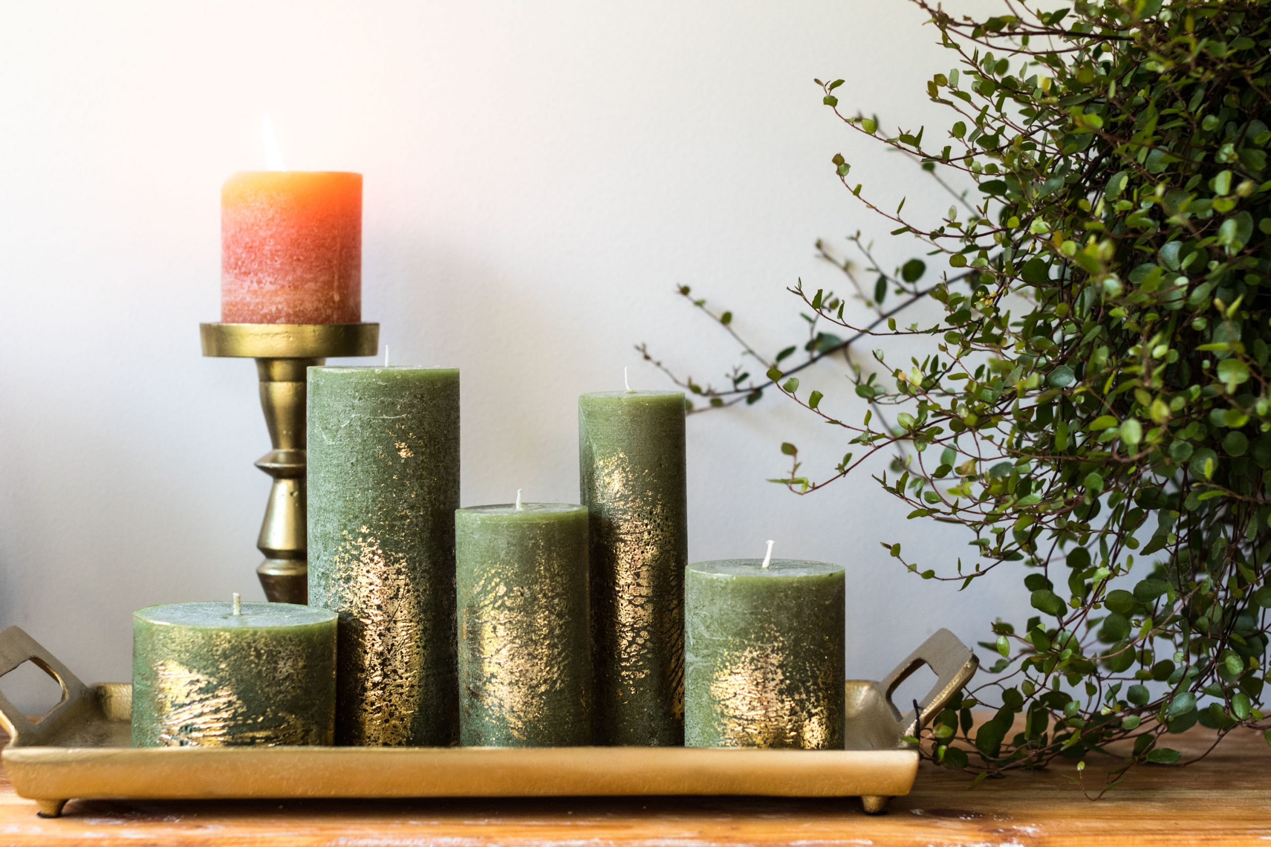 Sveču komplekts, olīve ar zelta rakstu