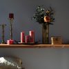 Sveces ar zelta spīdumu sniedz lielāku akcenta un svinīguma noskaņu. Ķieģeļsarkanas sveces interjerā piešķir telpai siltumu, dziļumu un izsmalcinātu akcentu. Šis tonis – starp sarkano un zemes krāsām – rada dabisku, mierīgu, bet vienlaikus arī elegantu noskaņu. Sveces šādā krāsā lieliski iederas gan modernā, gan klasiskā interjerā, īpaši kombinācijā ar koka, lina vai keramikas elementiem.